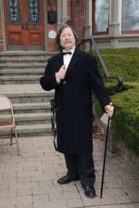 The walk lasts approximately an hour and goes over rough ground in a cemetery. Please wear walking shoes and bring an umbrella if rain threatens. This event is rain or shine. If you’re coming to a walk at one of the later times, you should bring a flashlight as it is dark in the cemetery.