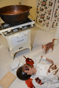 Join us for an evening of suspense at the Plymouth Historical Museum as we interrogate the suspects in the latest murder mystery. Help us solve this dastardly murder while enjoying pizza and cookies. We offer murder mysteries in June and December. Our event is set up as a “theater in the round” (except that it’s a rectangle), with the suspects in the middle. The murder is announced, the suspects start interrogating each other, and then the audience gets to participate. Once the pizza is delivered and consumed, accusations are made and the murderous plot is revealed. And it’s not always the butler!